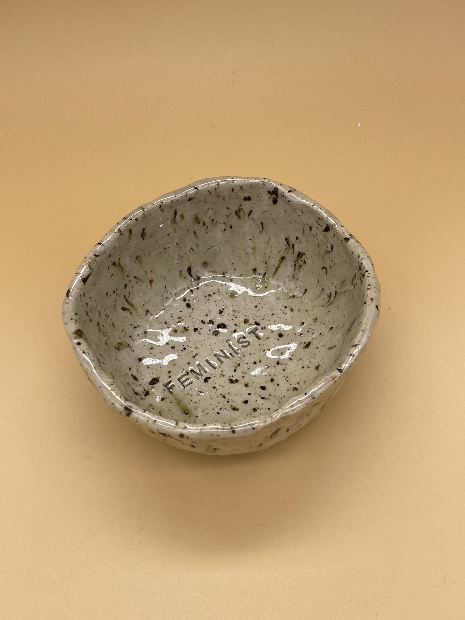 Cuenco feminist de cerámica Gres hecho y pintado a mano por Anita Trenzamundos.
