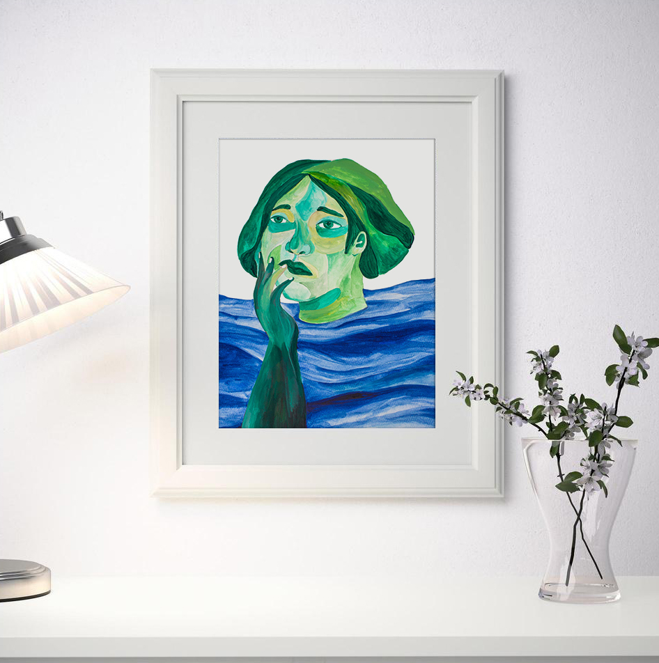 Nuestra lámina original ilustrada “Mar de dudas” nace de un gesto íntimo y reconocible: el instante suspendido en que una pregunta nos atraviesa. El rostro de una mujer, con expresión reflexiva y la mano rozando apenas su barbilla, aparece sumergido en un mar que lo envuelve. El agua simboliza ese estado líquido de la mente cuando duda, cuando navega entre pensamientos, sin certezas, buscando. Inspirada en lo natural y lo cotidiano, esta ilustración habla del misterio interior, del vaivén emocional y de la belleza de no tener todas las respuestas. La obra está realizada a mano con gouache sobre papel de alta calidad, cuidando con esmero cada trazo, cada tono. No es una reproducción ni una impresión: es una pieza única, original, que lleva consigo el tiempo, la respiración y la atención de lo hecho a mano.