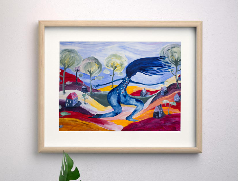 La lámina que te envío va sin enmarca, pero trabajo con formatos estándar así que no te será difícil encontrar un marco bonito que acompañe la ilustración, la segunda imagen muestra cómo queda enmarcada la obra.